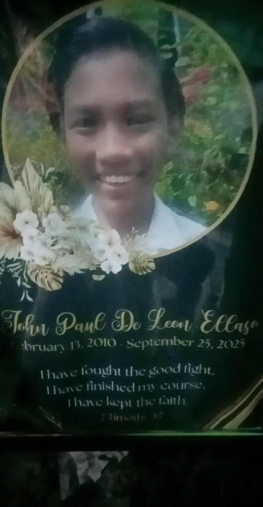 Son état de santé s’est malheureusement aggravé ces dernières semaines. John Paul venait d’avoir 14 ans quand on a diagnostiqué qu’il était atteint de leucémie. Ses parents ne pouvaient pas faire face aux frais médicaux.Grace à vous tous, un très grand élan de solidarité s’est mis en place. Pendant un an et demi, nous avons soutenu la famille financièrement dans ses dépenses médicales et moralement dans cette terrible épreuve. Les 3 traitements de chimiothérapie ont été un échec. Ces traitements ont eu d’importants effets secondaires. John Paul s’est battu avec courage, mais peu à peu ses forces ont diminué. Sa famille et l’équipe du foyer de Senden Home l’ont magnifiquement soutenu et accompagné. La mort de 3 de ses compagnons d’hospitalisation l’avait beaucoup affecté moralement. John Paul est parti dans son sommeil le 25 septembre.