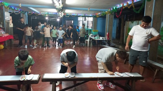 Puis, le 8 décembre 2024 a eu lieu la Christmas Party, une journée festive durant laquelle les familles aidées par le foyer et enfants se retrouvent, partagent un repas préparé au foyer ; un colis de nourriture est distribué (du riz, des boîtes de conserve, du lait en poudre, du sucre, des produits d’hygiène…) et des animations, impliquant notamment les mamans, sont proposées.